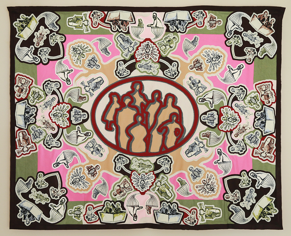 המבקר בתערוכתה של תמר לב-און מובל לתוך חלל המזכיר הן סביבה ביתית מוכרת והן מעין טירה אגדית - תמהיל של אמת ובדיה המחולל אי ודאות. כמו בעת קריאה במקורות היסטוריים סותרים, גוף העבודות משלב בין הארכיוני והמומצא, המתועד והמדומיין, ומצביע על הגבולות הדקים ביניהם: תצלומים משפחתיים מפורקים ומורכבים מחדש מבעד לסבכת ברזל, רישומים חסרים של דמויות ושטיח טלאים רקום המבוסס על התצלומים והרישומים גם יחד. במרכז השטיח תמונה משפחתית מרוקנת אשר מסביבה חגים השחקנים שנתלשו מתוכה, גיבורי סיפור אגדה עם חפציהם מרחפים במנותק ובמשותף, פורשים כנפיים, חיים ומתים, צפנים חזותיים של אודיסאות חבויות. במיתולוגיה החדשה הנרקמת על השטיח, המאפיינים הפנטסטיים של הגיבורים נגזרים מתולדותיהם של בני המשפחה. עיצוב השטיח מתחקה אחר דגמים קלאסיים, גיאומטריים או כאלה השואבים מן הפאונה והפלורה, אלא שהם מורכבים מדמויות, מסיפוריהן ומאובייקטים הקשורים ומזהים אותן. בו בזמן העבודה מהדהדת את הגובלנים, שטיחי קיר שנרקמו באירופה בידי נשים והתבססו על ציורים שתיארו דמויות אריסטוקרטיות בסצנות של קרבות ואהבות אגדיים, ובתקופות מאוחרות יותר בפעילויות של ציד, בילוי ושעשוע בנופים אידיליים. הגובלנים נוצרו בבתי מלאכה עבור האצולה והמלוכה, ואט-אט "בויתו" והפכו לפרקטיקה נשית עממית נפוצה. את המערך החזותי הנרטיבי מפעילה בעמלנות דמות ראשית נעלמה, דמותה הפיקטיבית של "הרוקמת והידעונית". זו הגבירה הרוקמת ואורגת את סיפורה שלה ואת סיפורם של אחרים. מתוך דורות של רוקמות ואורגות היא פורשת את מניפת ההיסטוריות שלה בשפה ביקורתית וחתרנית המשלבת הפרדות דיגיטליות, רקמה תעשייתית ופעולה ידנית ועוטה על עצמה סממנים קיטשיים ונוסטלגיים. התערוכה מנכיחה את הגבולות הנזילים בין האמנות לקראפט, בין גבוה לנמוך ובין העכשווי למסורתי מתוך עמדה מגדרית מוצהרת. היא מעלה את רוחות המתים באוב, ומצביעה על יכולתו של מעשה האמנות לכתוב ולתעד את המציאות ובו בזמן לערער עליה ועל אפשרויות הייצוג שלה. הדמויות יוצאות מן השטיח אל שני הקירות הסמוכים לו כשהן ממלאות תפקידים מנוגדים: מן העבר האחד מתפרקת המשפחה לאינדיבידואלים שלה. ללא הקונטקסט הצילומי, הם מישירים מבט יחידני לצופה ובה בעת מרמזים על החלקים החסרים. מן העבר השני תצלומי בני המשפחה מתערבבים זה בזה בשילובים שונים – לתמונת המשפחה מסתננים אורחים ממשפחות אחרות, הבודקים מה היה קורה אילו הסיטואציה המשפחתית, המפגשים הזוגיים ומהלכי החיים היו שונים.