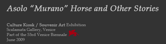 About the show: Markers 7 project “Culture Kiosk/Souvenir Art”. The exhibition will be shown at the Scalamata Gallery in the Jewish Ghetto located in the centre of the city, during the month of June 2009, and will coincide with the opening events of the Venice Biennale.